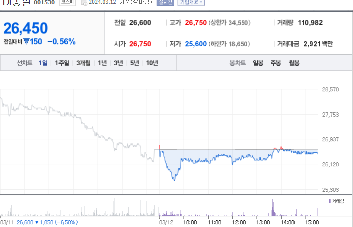 DI동일의 현재 주가는 26,600원이며 전일 대비 -1,850원의 하락을 보여주고 있습니다. 주주 현황을 살펴보면 정헌재단(외 8인)이 지분의 21.35%를 소유하고 있습니다. DI동일은 섬유 및 의복 기업으로서, 현재 주가는 26,600원입니다. 시가 총액은 6543억 원이며 발행 주식수는 24,738,643주입니다. 외국인 보유 비중은 3.84%이며, 장중 거래량은 210,904주를 기록했습니다. 또한, 매출액은 5,817억 원을 달성했습니다.