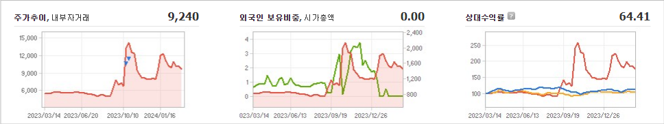 흥구석유의 현재 주가는 9,240원이며 전일 대비 -7.69원의 변동을 보이고 있습니다. 주주 현황을 살펴보면 김상우(외 3인)이 지분의 32.23%를 소유하고 있습니다. 흥구석유는 석유 및 가스 기업으로서, 현재 주가는 9,240원입니다. 시가 총액은 1454억 원이며 발행 주식수는 15,000,000주입니다. 외국인 보유 비중은 0.00%이며, 장중 거래량은 290,955주를 기록했습니다. 또한, 매출액은 945억 원을 달성했습니다.