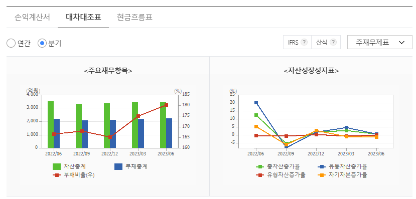 -2023년 3월 전년동기 대비 별도기준 매출액은 0.3% 증가, 영업이익은 42.1% 감소, 당기순이익은 86.3% 감소. 지난해에 이어 전체 매출에서 전기차 부품 소재 비중이 확대됨. 전기차 부품 관련 수요의 증가가 예상되므로, 관련 소재 설비확대를 위해 준비 중에 있음. 전년동기 대비 수출액 감소 및 원가 상승으로 인해 영업이익이 감소하였으며, 금융부채가 큰 폭으로 확대되며 당기순이익 급감.