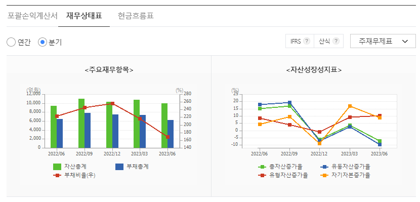 -2023년 6월 전년동기 대비 연결기준 매출액은 36.2% 증가, 영업이익은 169.1% 증가, 당기순이익은 303.4% 증가. 동사 매출은 전년 동기 대비 대폭 증가했으며 매출 증가에 따른 매출원가와 판관비, 인건비 부담은 늘었지만 매출 증가 폭이 커 영업이익은 전년 동기 대비 대폭 증가함. 전반적인 수익성이 개선된 가운데 각종 이자비용 부담 증가에도 불구하고 당기순이익 전년 동기 대비 큰 폭 증가함.