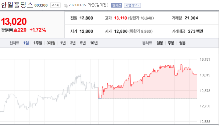 이 글은 한일홀딩스 주가 전망과 목표 주가, 기업 정보에 대해 설명합니다. 주식 투자에서 핵심은 미래의 기업 가치를 예측하고 선제적으로 움직이는 것입니다. 따라서 투자 대상을 결정하기 전에 현재 기업의 상황과 수치를 검토하는 것이 필요합니다. 한일홀딩스 주식의 주요 현황과 투자 정보를 확인하고 주식 투자에 도움을 줄 자료들을 모아두었으니, 끝까지 읽어보시고 투자에 도움을 받으시길 바랍니다.
