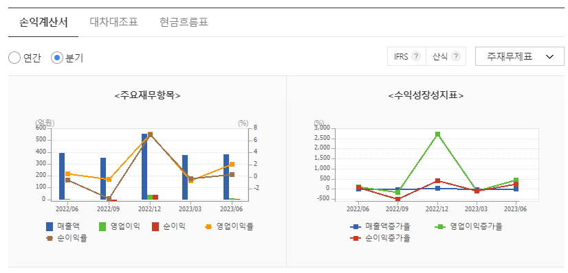 -2023년 3월 전년동기 대비 별도기준 매출액은 20.1% 증가, 영업손실은 72.4% 감소, 당기순손실은 84.6% 감소. 동사의 방산사업은 장기 전망에 따른 연구개발에 주력하고, 정부정책 및 시장 수요에 따라 신속한 의사결정으로 매출 및 이익 안정화에 주력하고 있음. 향후 항공우주, 무인항공기 등 대형 국책사업 및 체계사업에서 개발과 생산·투자 및 유도지상무기, 해상무기, 무인사업 분야에서도 박차를 가하고 있음.