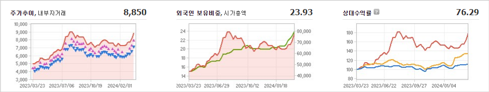 삼성중공업의 현재 주가는 8,850원이며 전일 대비 원의 모습을 보이고 있습니다. 주주현황을 살펴보면 삼성전자(외 7인)이 지분 20.91%를 소유하고 있습니다. 삼성중공업은 조선 기업으로, 장중 기준으로 주가는 8,850원입니다. 시가 총액은 7조 9904억 원이며 발행 주식수는 880,000,000주입니다. 외국인 보유 비중은 23.93%이며 장중 거래량은 7,200,530주를 기록했습니다. 또한, 매출액은 80,094억 원을 달성했습니다.