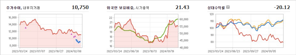 LG디스플레이의 현재 주가는 10,750원이며 전일 대비 -460원 하락하였습니다. LG디스플레이의 대주주인 LG전자(외 1인)은 지분의 36.72%를 소유하고 있습니다. 이 회사는 디스플레이 및 관련 부품 분야에서 활동하고 있으며 현재 주가는 10,750원입니다. LG디스플레이의 시가 총액은 3조 8465억 원이며 발행 주식수는 500,000,000주입니다. 외국인의 보유 비중은 21.43%이며 장중 거래량은 3,976,426주입니다. 또한, 이 회사는 213,308억 원의 매출액을 기록하였습니다.