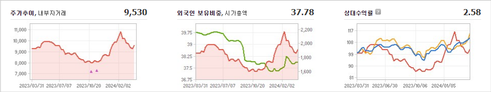 삼영전자의 현재 주가는 9,530원으로 전일 대비 -50원 하락한 상태입니다. 주주 현황을 살펴보면 NIPPON CHEMICAL CAPACITOR INC.(외 9인)이 지분의 53.02%를 소유하고 있습니다. 삼영전자는 전기장비 기업으로, 현재 주가는 9,530원입니다. 시가 총액은 1906억 원이며 발행 주식수는 20,000,000주입니다. 외국인 보유 비중은 37.78%이며, 장중 거래량은 24,574주를 기록했습니다. 매출액은 1,773억 원입니다.