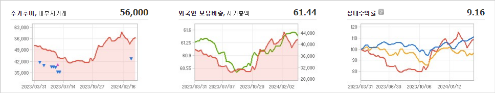 현재 코웨이의 주가는 56,000원이며 전일 대비 -300원의 하락세를 보이고 있습니다. 코웨이의 대주주로는 넷마블(외 7인)이 지분의 25.10%를 소유하고 있습니다. 코웨이는 내구소비재 기업으로 분류되며, 현재 주식 시가총액은 4조1328억 원이며 발행된 주식수는 73,799,619주입니다. 외국인 보유 비중은 61.44%이며, 장중 거래량은 103,004주를 기록했습니다. 또한, 코웨이는 최근 매출액으로 39,665억 원을 달성했습니다.