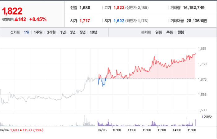 에이프로젠의 현재 주가는 1,822원으로 전일 대비 원의 모습을 보이고 있습니다. 주주현황을 살펴보면 지베이스(외 5인)이 지분 45.18%를 소유하고 있습니다. 에이프로젠은 제약 기업으로 시가 총액은 4825억 원이며 발행 주식수는 264,837,258주입니다. 외국인 보유 비중은 8.70%이며 장중 거래량은 16,512,896를 기록했습니다. 또한 매출액은 1,506억 원을 달성했습니다.