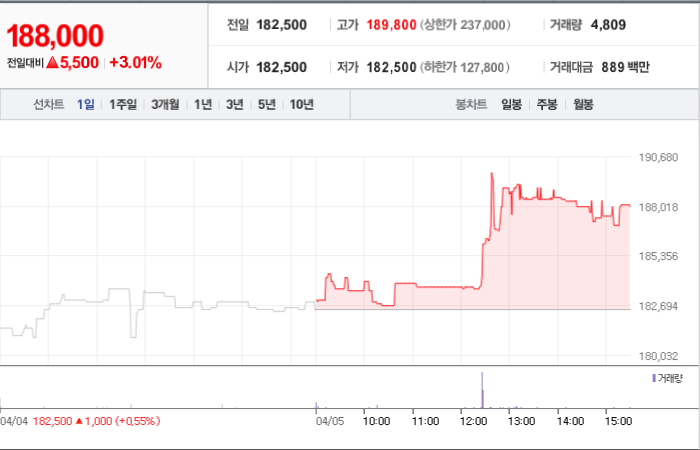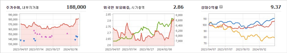 미원상사의 현재 주가는 188,000원이며 전일 대비 원의 모습을 보이고 있습니다. 주주현황을 살펴보면 김정돈(외 42인)이 지분 61.71%를 소유하고 있습니다. 미원상사는 화학 기업으로, 장중 기준으로 주가는 188,000원이고 시가 총액은 8930억 원입니다. 발행 주식수는 4,750,000주이며 외국인 보유 비중은 2.86%입니다. 장중 거래량은 4,812를 기록했으며 매출액은 4,214억 원을 달성했습니다.