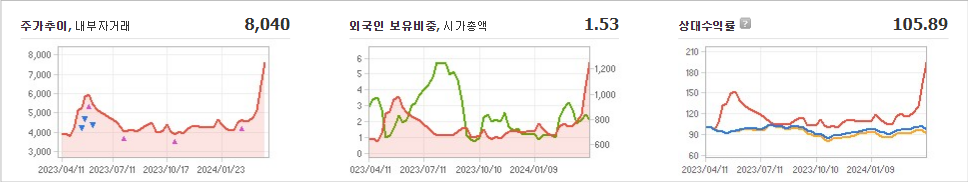 지엔씨에너지의 현재 주가는 8,040원이며 전일 대비 원의 모습을 보이고 있습니다. 주주현황을 살펴보면 안병철(외 7인)이 지분의 34.59%를 소유하고 있습니다. 지엔씨에너지는 전기장비 기업으로, 현재 주가는 8,040원입니다. 시가 총액은 1322억 원이며 발행 주식수는 16,448,909주입니다. 외국인 보유 비중은 1.53%이며, 장중 거래량은 6,629,043주를 기록했습니다. 매출액은 1,664억 원을 달성했습니다.