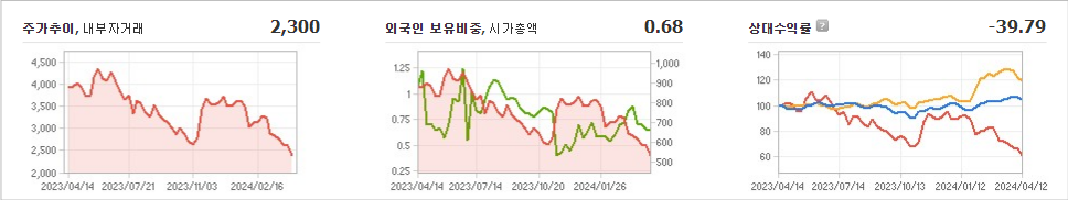 KC그린홀딩스의 현재 주가는 2,300원이며 전일 대비 -30원 하락하였습니다. 이태영(외 8인)은 KC그린홀딩스의 주주로서 지분의 46.21%를 소유하고 있습니다. KC그린홀딩스는 상업서비스 기업으로서 현재 주가는 2,300원입니다. 시가 총액은 516억 원이며 발행 주식수는 22,434,980주입니다. 외국인 보유 비중은 0.68%이고, 장중 거래량은 64,261주입니다. 또한, KC그린홀딩스는 매출액으로 6,985억 원을 달성하였습니다.
