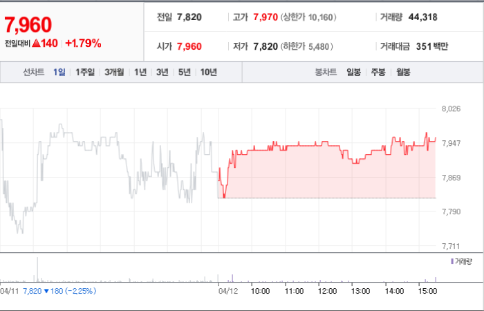 한국콜마홀딩스의 현재 주가는 7,960원이며 전일 대비 -1.61원으로 하락하였습니다. 주주현황을 살펴보면 윤상현(외 15인)이 지분의 45.03%를 소유하고 있습니다. 한국콜마홀딩스는 개인생활용품 기업으로, 현재 주가는 7,960원입니다. 시가 총액은 2927억 원이며 발행 주식수는 36,769,520주입니다. 외국인 보유 비중은 14.82%이며, 장중 거래량은 44,325주입니다. 또한, 매출액은 6,373억 원을 기록하였습니다.