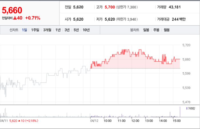 디와이의 현재 주가는 5,660원이며 전일 대비 -4.39원의 변동을 보이고 있습니다. 주주현황을 살펴보면 조병호(외 4인)이 지분의 36.90%를 소유하고 있습니다. 디와이는 기계 기업으로, 현재 주가는 5,660원이며 시가 총액은 1490억 원입니다. 발행 주식수는 26,319,633주이며, 외국인 보유 비중은 3.55%입니다. 장중 거래량은 43,383주를 기록했습니다. 또한, 디와이는 매출액으로 11,912억 원을 달성했습니다.